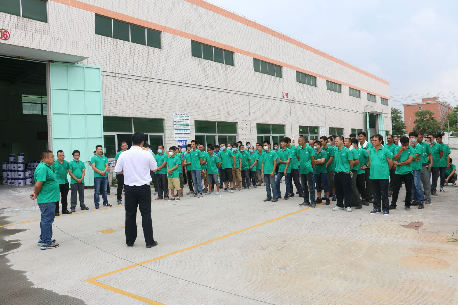 演練內容為木器漆車間附近發現火情。演練準時開始:發現“火情”後,公司立即啟動火災應急預案,保安部即時撥打119報警,義務消防隊及時趕到現場並利用滅火器撲救初期火災,緊急疏散全體員工有序撤離事故現場。